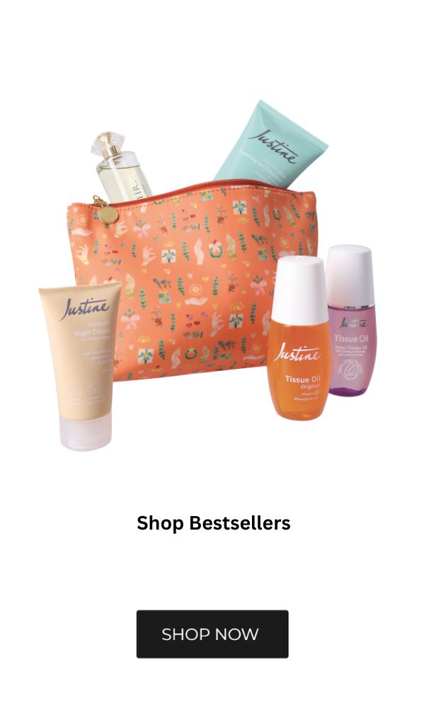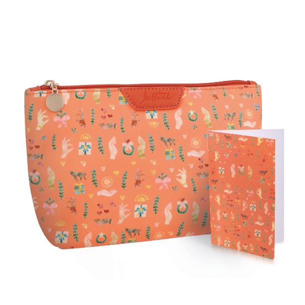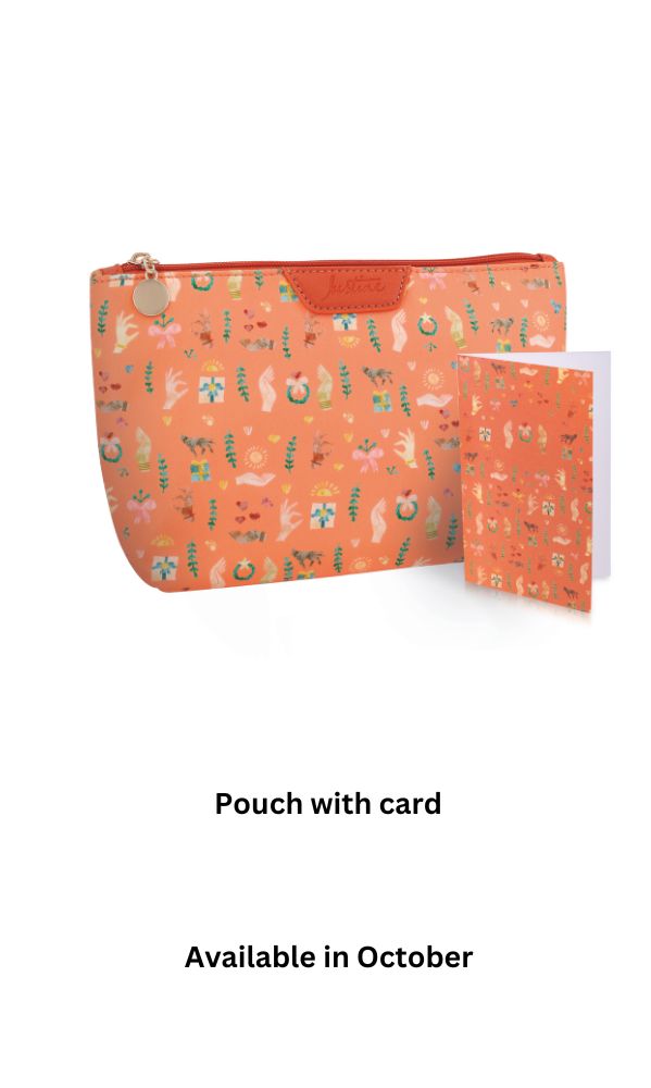 Our beautifully designed pouch holds all her favourite Justine goodies — and a handwritten note too.